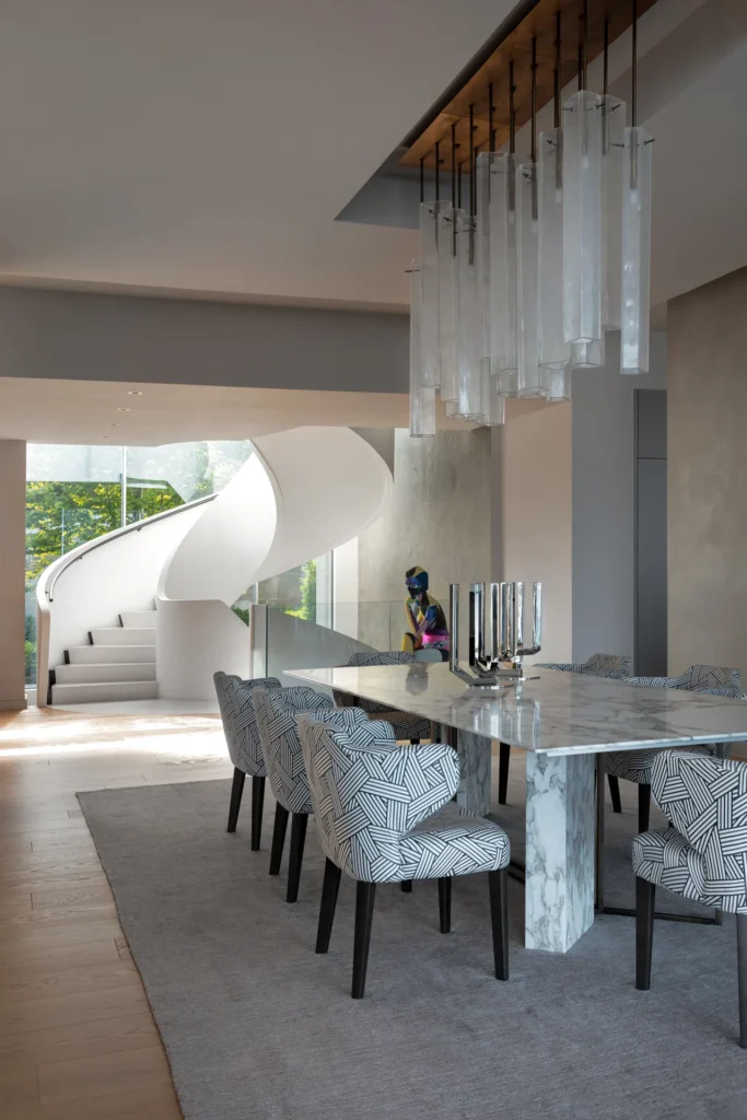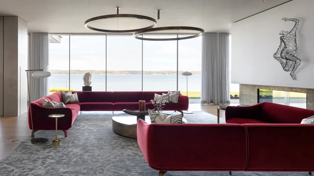 È una scommessa di contemporaneità immersa in un paesaggio naturale e immutato nel tempo». Questa è Wave’s End House. Una villa contemporanea che, grazie alla complicità del committente con l’interior designer Biancamaria Santangelo di Nabi Interior Design, porta in scena il meglio del Made in Italy oltre oceano. Infatti, sull’isola della costa orientale degli Stati Uniti – tra le curve vertiginose delle ridenti colline di Long Island che fanno da corniche a questa dimora – complementi d’arredo firmati dai migliori marchi Italiani mostrano con orgoglio il saper fare del Bel Paese. Ne è un chiaro esempio la scala elicoidale posta all’interno della struttura. Una vera e propria opera di ingegneria studiata e costruita in Italia, che forse, è l’icona di tutta la fluida architettura dell’abitazione, in cui – la funzionalità degli ambienti interni attraverso le ampie vetrate – da vita a un dialogo costante con la natura circostante. Un’armonia perfetta tra architettura, design e arte – nelle loro declinazioni più contemporanee – nel pieno rispetto dell’ambiente. E così, 1.200 metri quadri disposti su tre livelli, diventano il punto di sutura tra Stati Uniti e Italia.