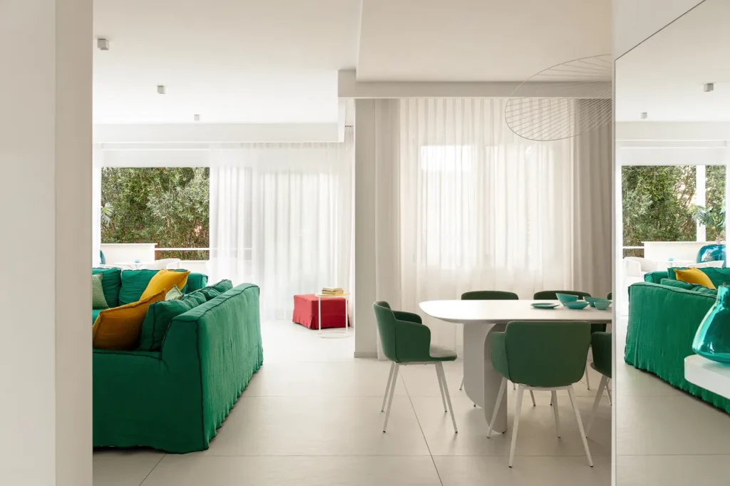 Villa Schettino, nel parco del Cilento, è una splendida dimora degli anni ’70 che è stata rinnovata per offrire eleganza e comfort, esaltando il design mediterraneo e riflettendo i colori e lo stile del territorio.