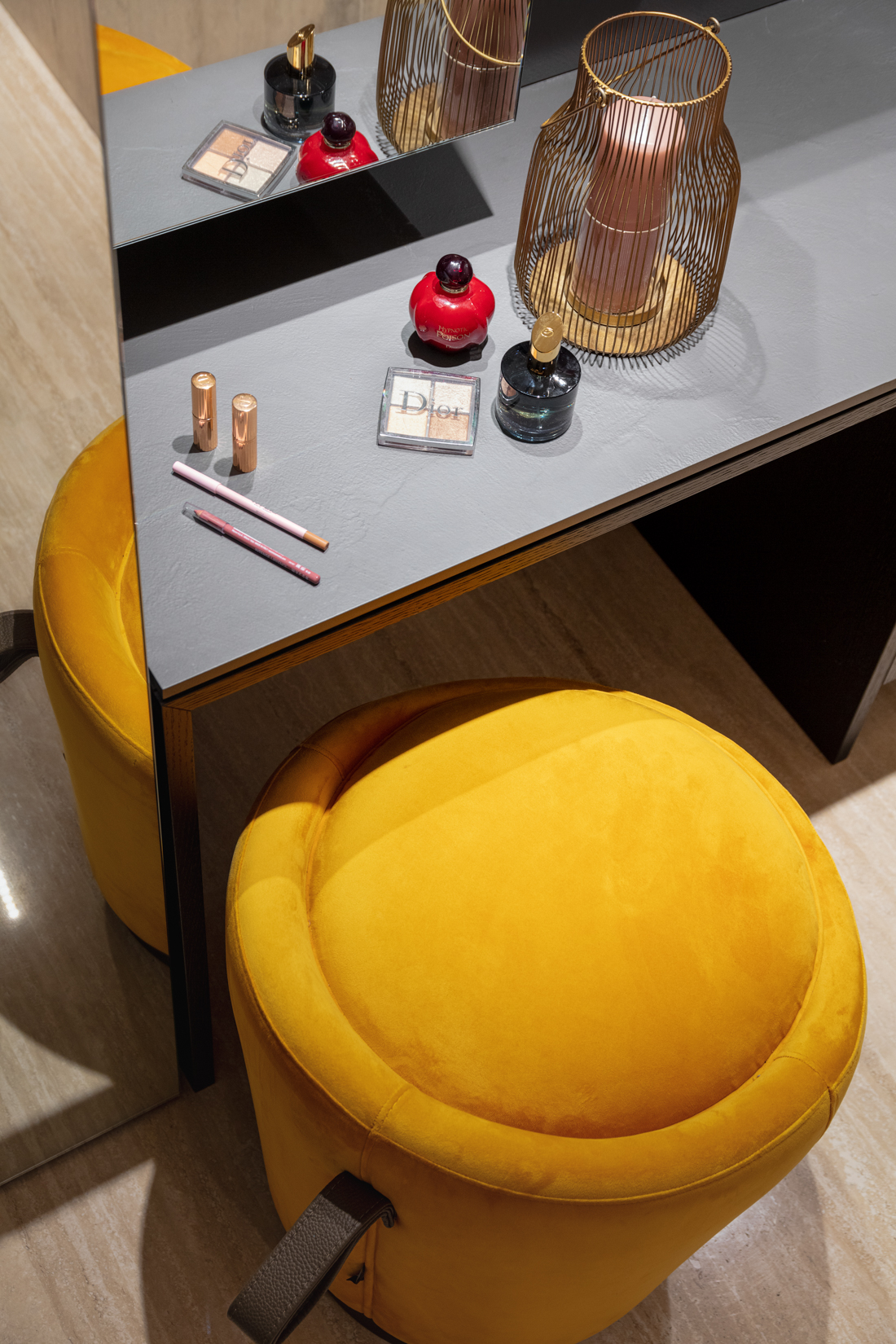 La zona conviviale, il rigore e l’eleganza dei materiali degli arredi Nabi.collection vengono ammorbiditi dai divani informali e colorati, mentre la zona pranzo è condivisa con la cucina così da non creare barriere tra genitori e figli e potersi riunire proprio come in un nido.
